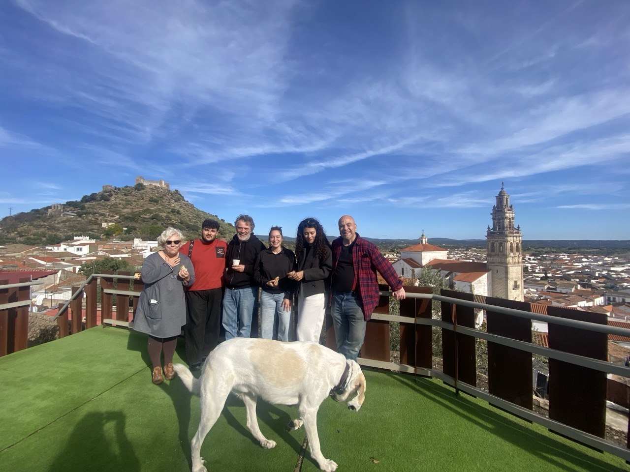 Y así, el sábado recibimos a Rocío, Inés y Hugo -los alumnos- y a Luis Miguel y Pepa Barral, grandes profesionales, profesores y viejos amigos, en la explanada de la antigua iglesia de San Juan, en Burguillos del Cerro, sede del proyecto RuralNEXT. Se acercaron vecinos del barrio y amigos de la Fundación Maimona para darles el recibimiento a la comarca.